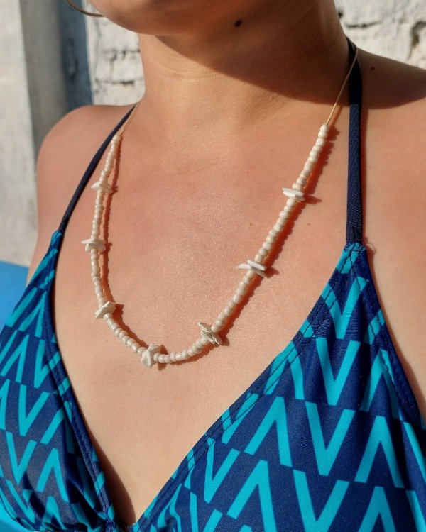 De hilo con mostacillas, escallas naturales y con cierre ajustable.