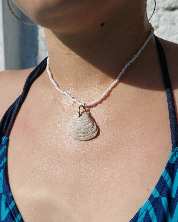Mostacillas y ostra natural (caracol) , con mosquetón/ganchito de cierre.100% apto para el agua 🌊🐚