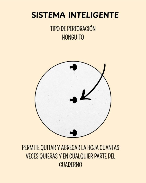 Está realizada con tapa semi dura plastificada (para mayor protección) + discos inteligentes y hojas de 90 gr. (Para que no se pase el resaltador 😏)