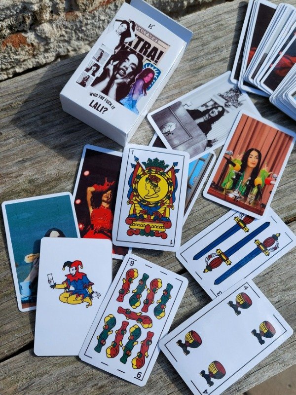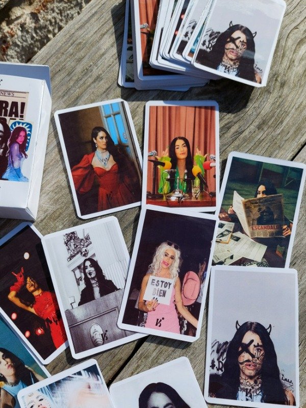 Un total de 50 cartas🫶🏼 plastificadas y la caja con el diseño de las parte de atrás de la carta.